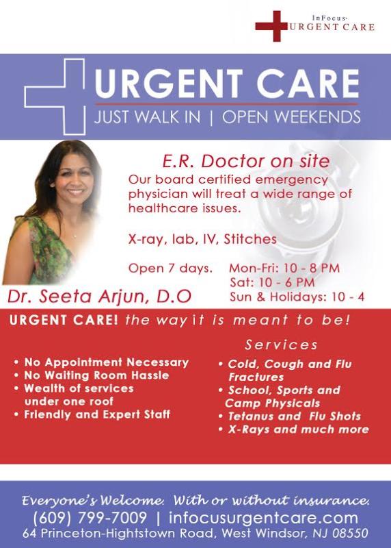 Infocus Urgent Care Dr Seeta Arjun New Brunswick Nj Ewing Nj Princeton Junction Nj